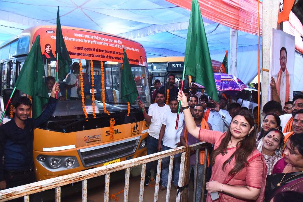 इस अवसर पर मुख्यमंत्री श्री विष्णु देव साय जी ने पंडरिया विधायक श्रीमती भावना बोहरा जी द्वारा जनता के लिए किए जा रहे जनसेवा के कार्यों एवं प्रयासों की प्रशंसा करते हुए कहा कि पंडरिया विधानसभा की विधायक भावना बोहरा जी द्वारा जनता की आकाँक्षाओं को पूरा करते हुए अभूतपूर्व कार्य किये जा रहें हैं। एक जागरूक विधायक और समाज सेविका के रूप में वे अपने सभी दायित्वों का पूरे समर्पण भावना से निर्वहन कर रहीं हैं। आज उनके द्वारा बेटियों की शिक्षा के लिए 5 निःशुल्क बस सेवा की शुरुआत करके एक मिसाल पेश की है कि एक जनप्रतिनिधि क्या कर सकता है। वे कई महिलाओं के लिए एक प्रेरणा हैं जो सामाजिक परिवर्तन से लेकर अपने क्षेत्र के विकास एवं जनता की सेवा में निःस्वार्थ कार्य कर रही हैं।