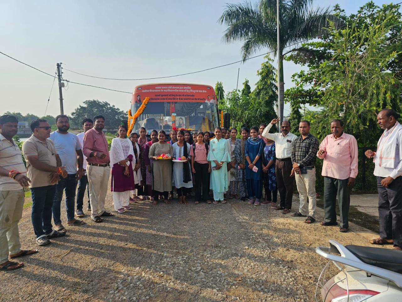 पंडरिया विधायक भावना बोहरा द्वारा संचालित महाविद्यालयीन छात्राओं हेतु निःशुल्क बस सेवा का संचालन प्रारम्भ, छात्राओं,परिजनों और ग्रामीणों ने पूजा कर बस का किया भव्य स्वागत
